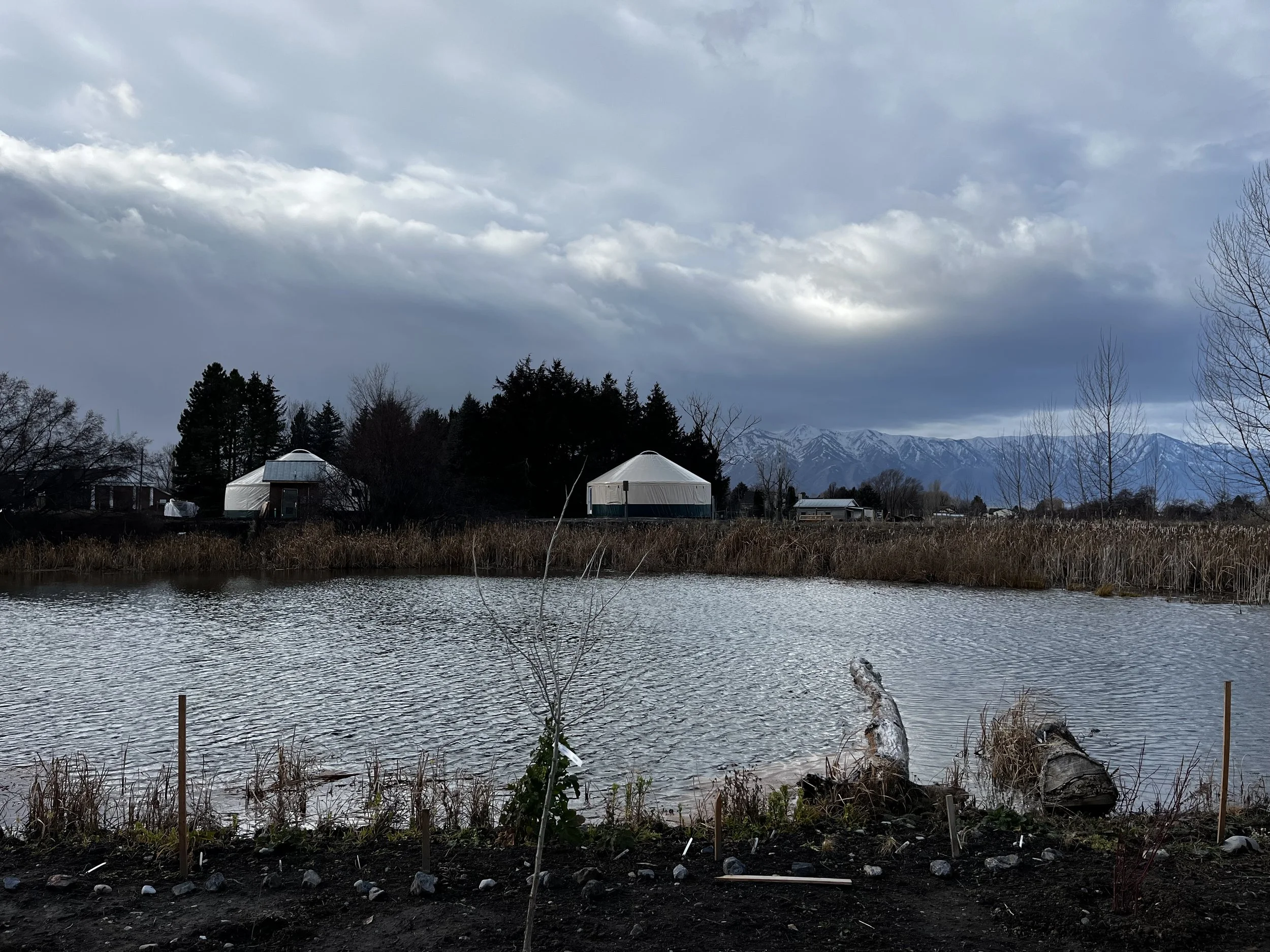 Visitors and students experiencing Stokes' Outdoor Classroom's vast wildlife habitat immediately as they walk under the arbor entrance and begin to meander along trails winding throughout the property and enjoy breath-taking views of the majestic Wellsville Mountains and Bear River Range as they gather under the Alice Denney pavilion.